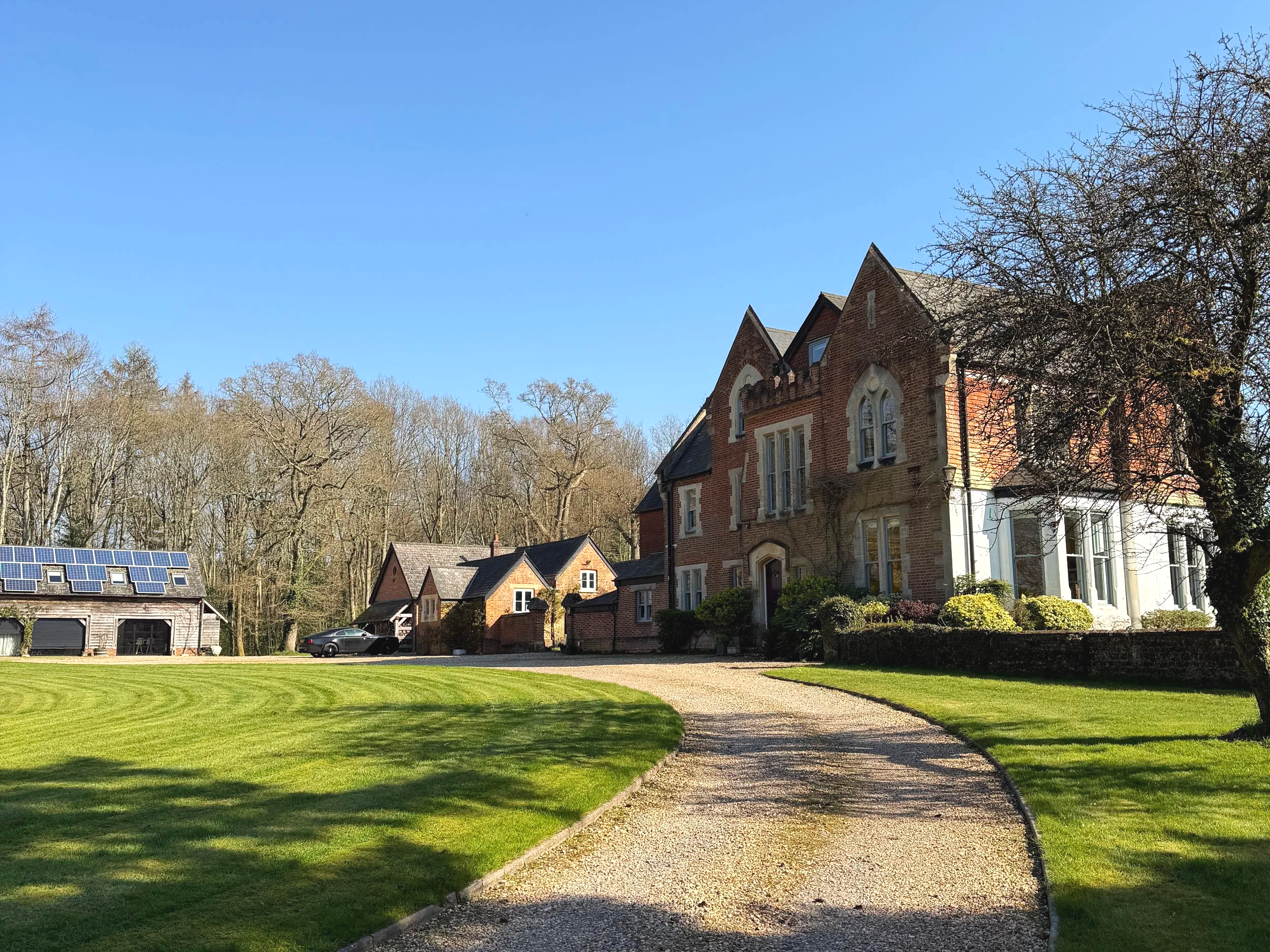 8 bedroom Victorian former Vicarage set in 8 acres with swimming pool, tennis court and small lake with 3 bed coach house.